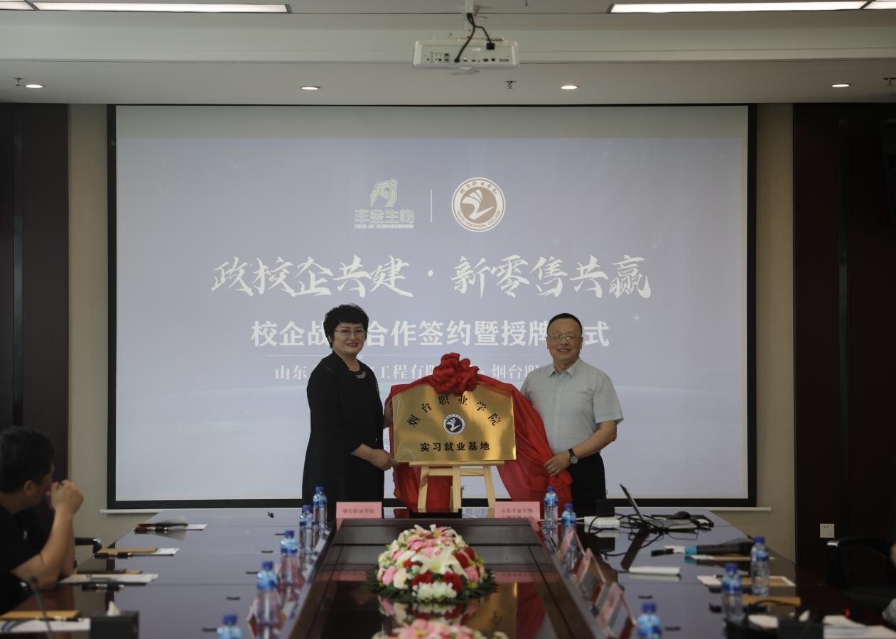 在与会人员共同见证下,校企双方领导共同签订校企战略合作协议,并为烟台职业学院实习就业基地揭牌。